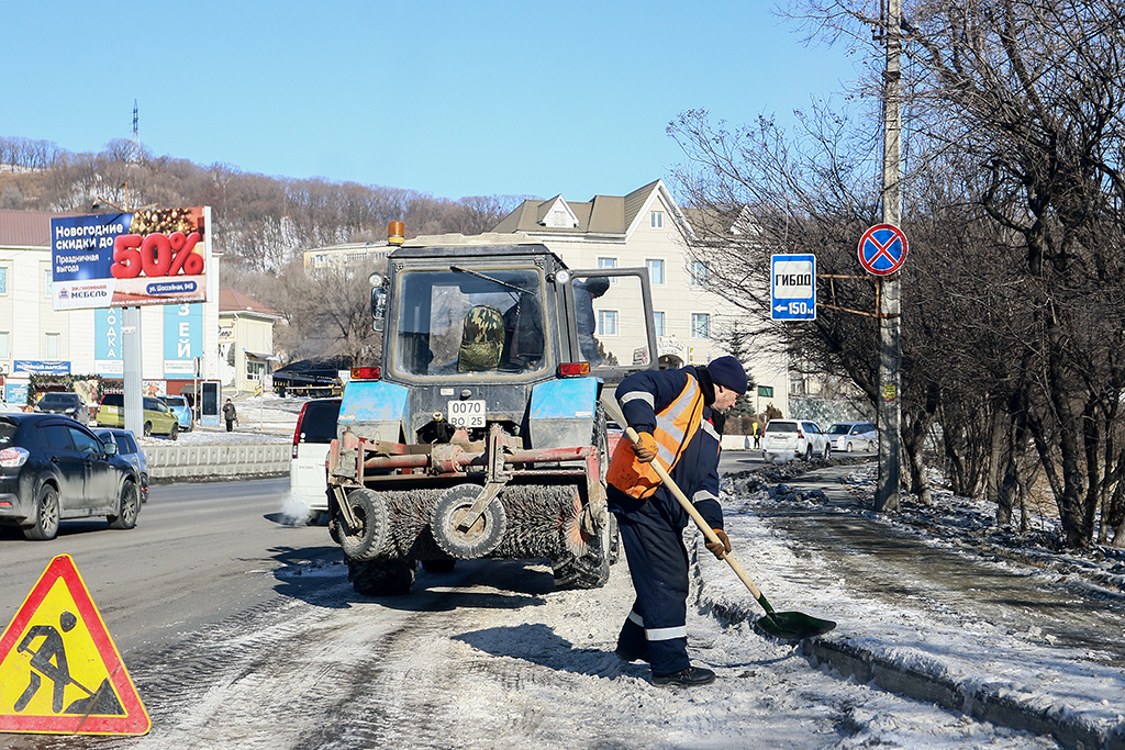 МКУ «Дорожно-эксплуатационный участок» продолжает уборку в районах города. Основные задачи бригад — борьба с гололедом для обеспечения безопасности пешеходов. Сегодня на участке от остановки «Ленинская» до